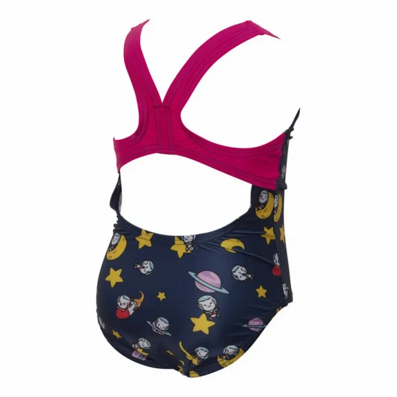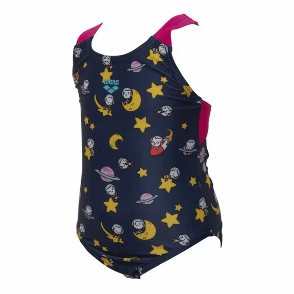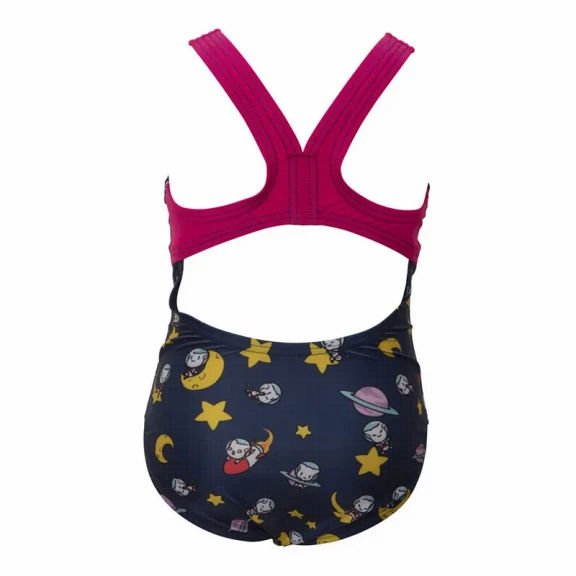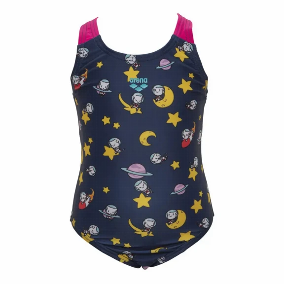 Bañador Arena Space Cats azul marino rosa amarillo niña