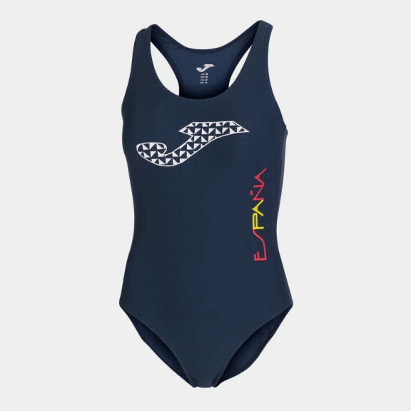 Bañador para mujer, de la colección de los JJOO de Tokyo 2020, con diseño serigrafiado del logo J y “ESPAÑA” en el lateral. Incluye malla interior en la zona del pecho.